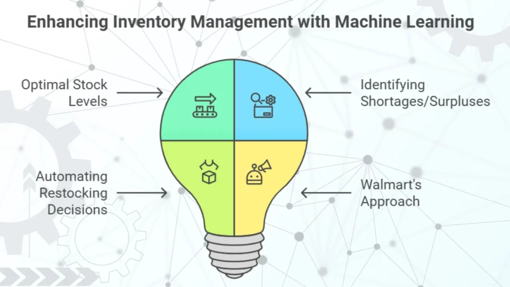 Walmart uses machine learning to manage its inventory across thousands of stores. The company’s ML driven systems analyze purchasing patterns, weather conditions and even local events to predict demand fluctuations. This enables Walmart to adjust its inventory dynamically, by ensuring shelves are stocked with high demand products while reducing excess inventory.